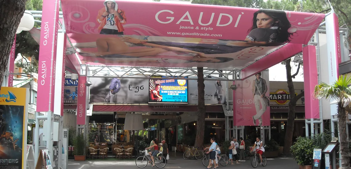 Sul viale più prestigioso di Riccione, posizionata nel punto più strategico di Viale Ceccarini, riferimento principale per le attività di pubbliche relazioni e promozioni in genere, visibile anche da V.le Dante.